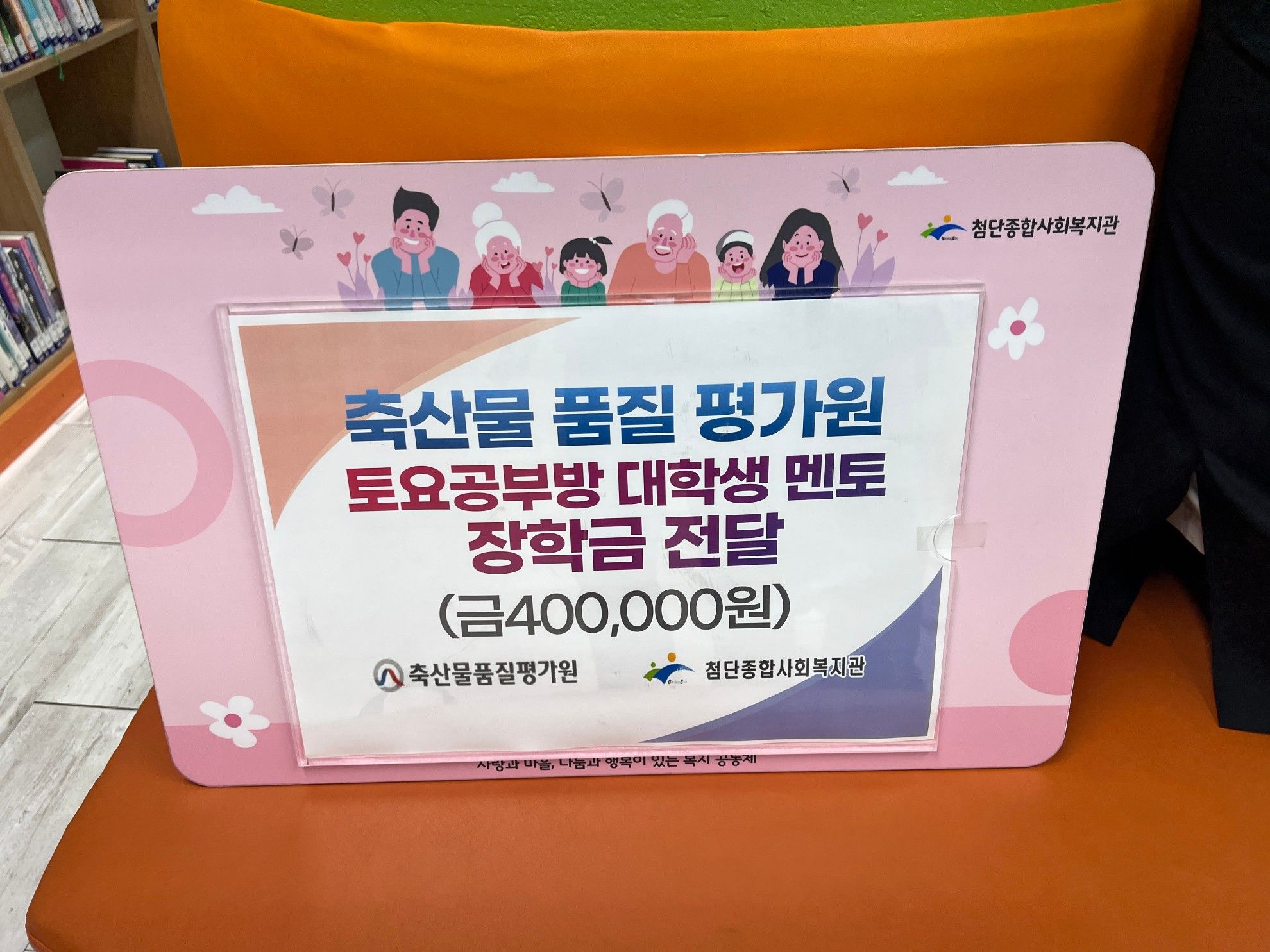사업소식축산물품질평가원 ‘꿈지원 학자금(장학금)’을 전달2025년 11월 11일축산물품질평가원에서는 첨단복지관 토요공부방 멘토 4명에게 ‘꿈지원 학자금(장학금)’을 전달하며 청소년 멘토들의 학업과 꿈을 응원하는 뜻 깊은 시간을 가졌습니다.목록으로